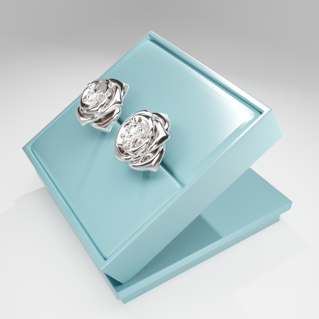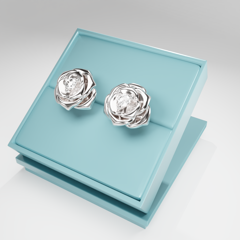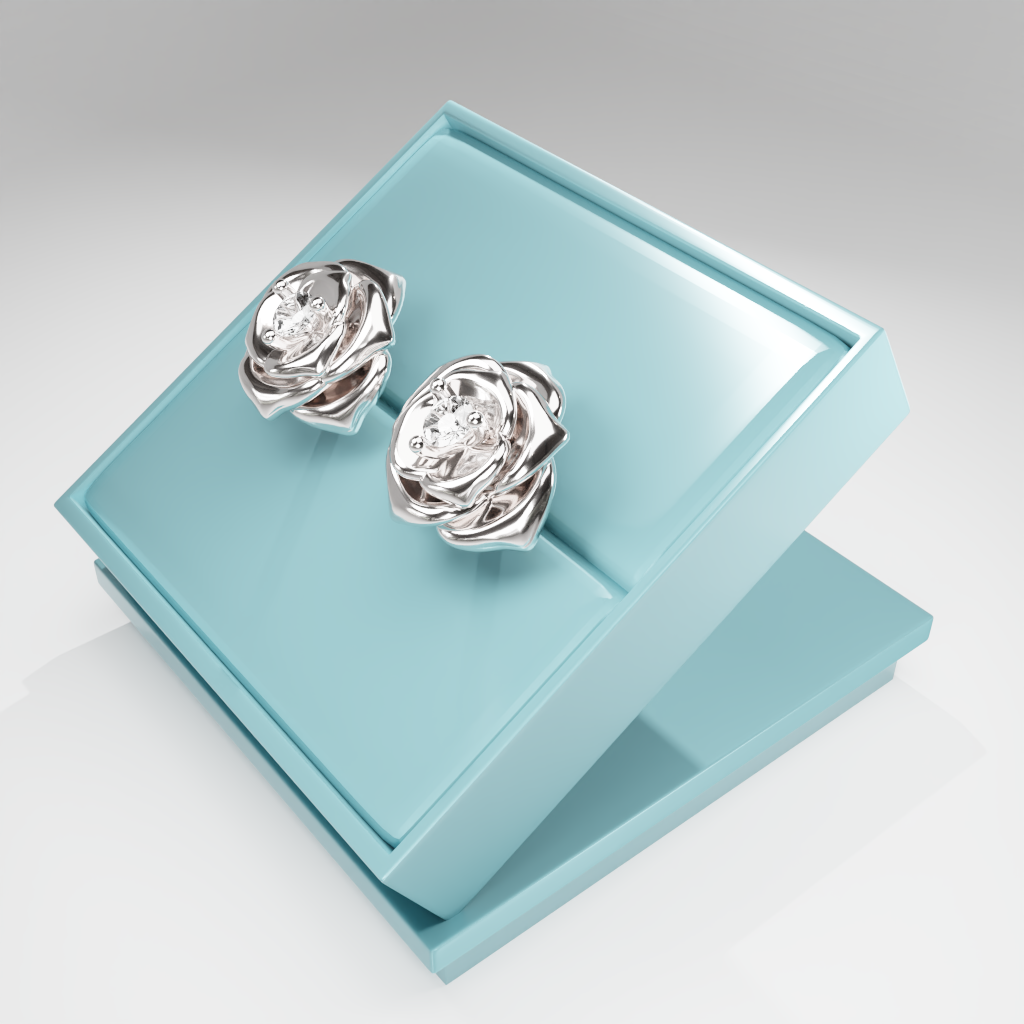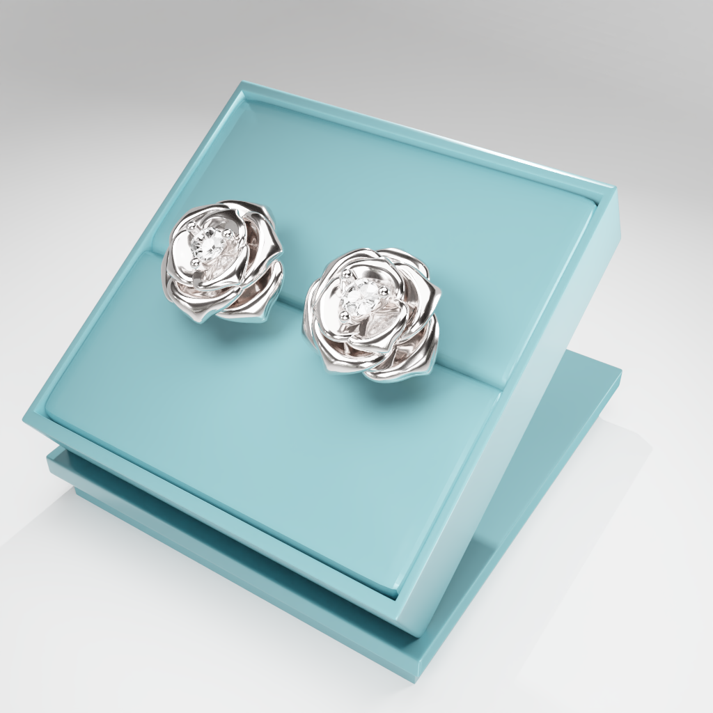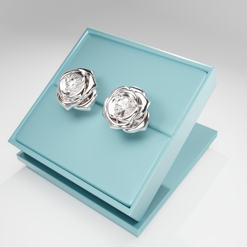 Kolczyki Rose to hołd dla elegancji zaklętej w geometrycznej precyzji. Delikatna forma rozwiniętej róży otacza moissanit o średnicy 2.5 mm, który dzięki swojej wyjątkowej brylancji przyciąga światło i spojrzenia.