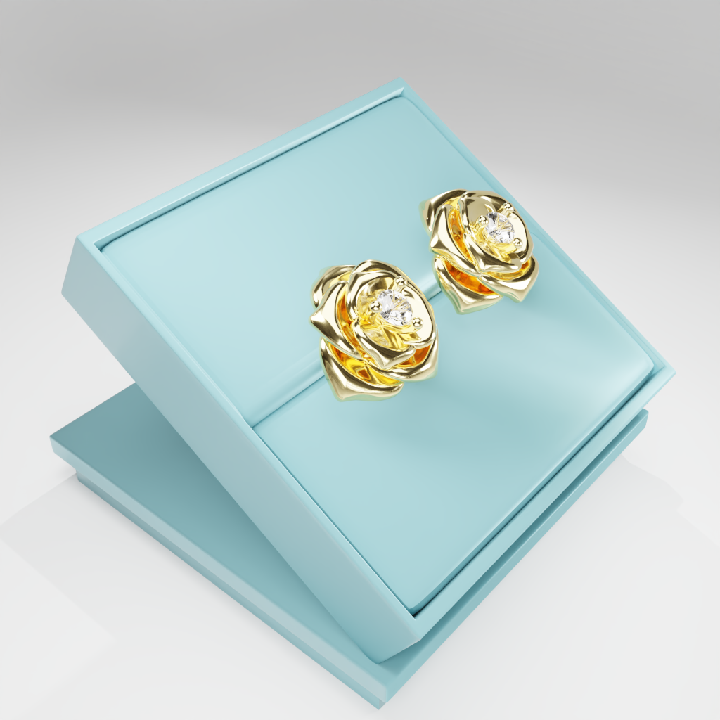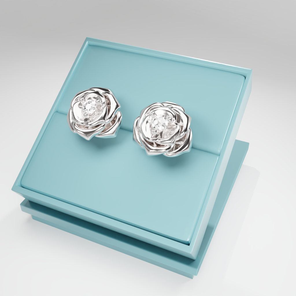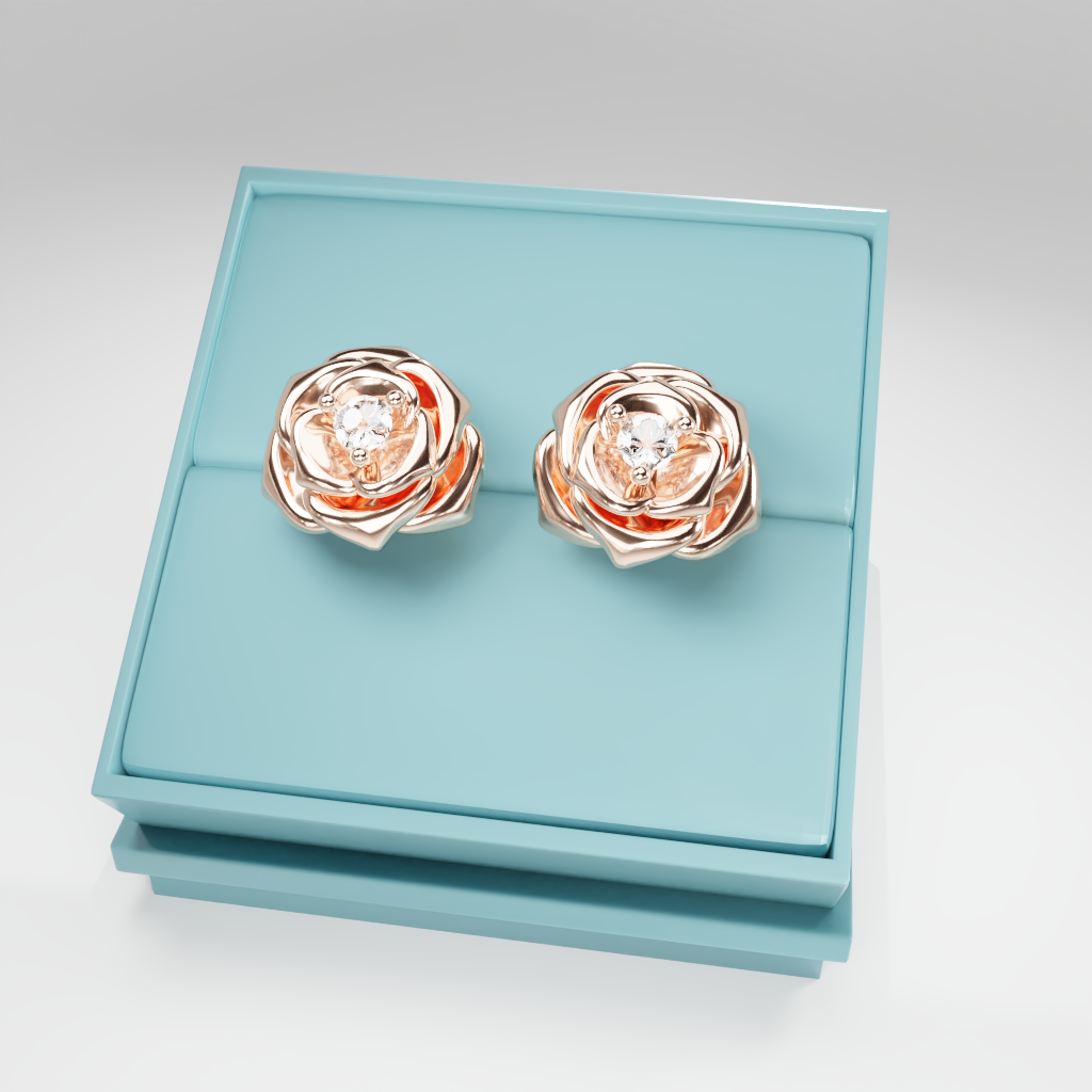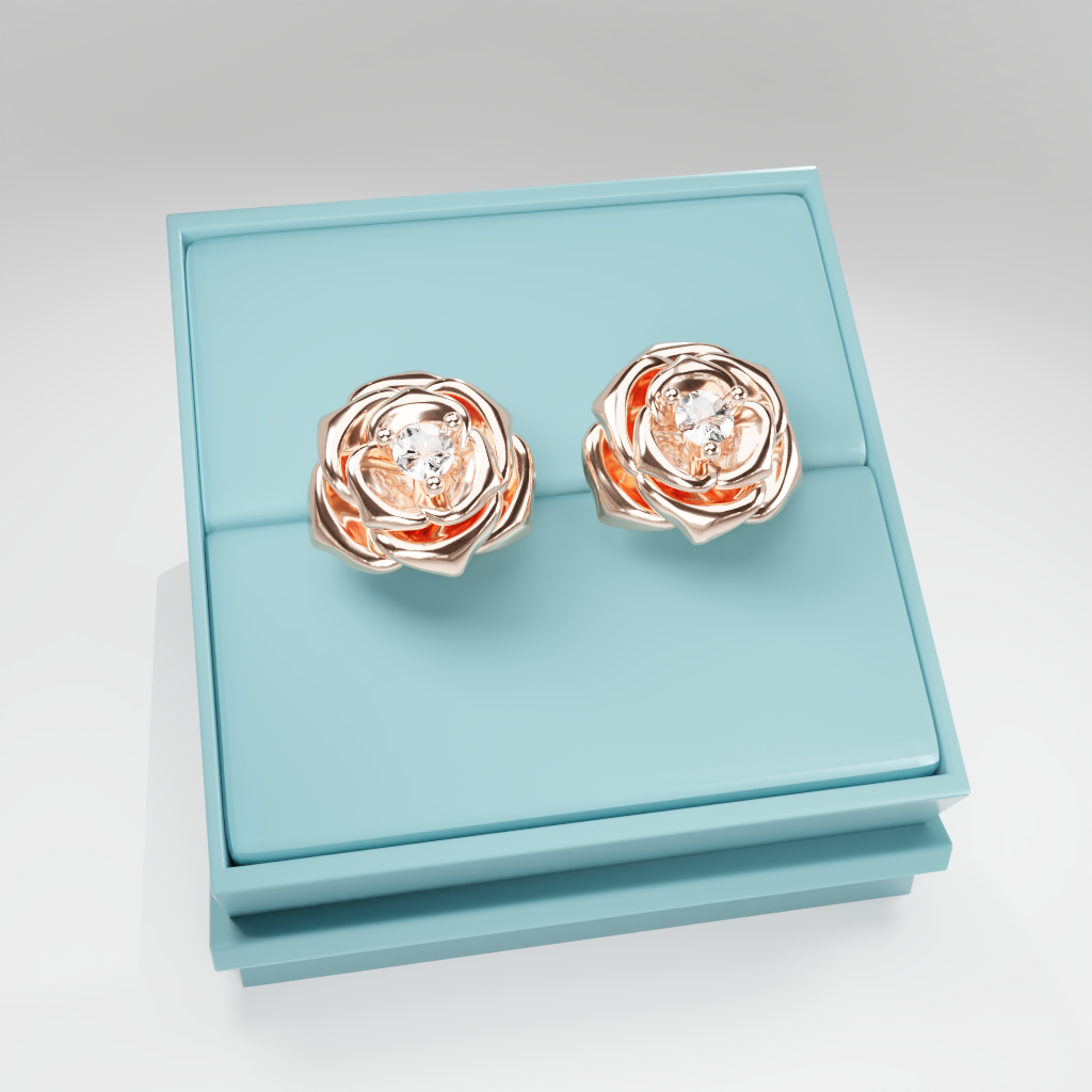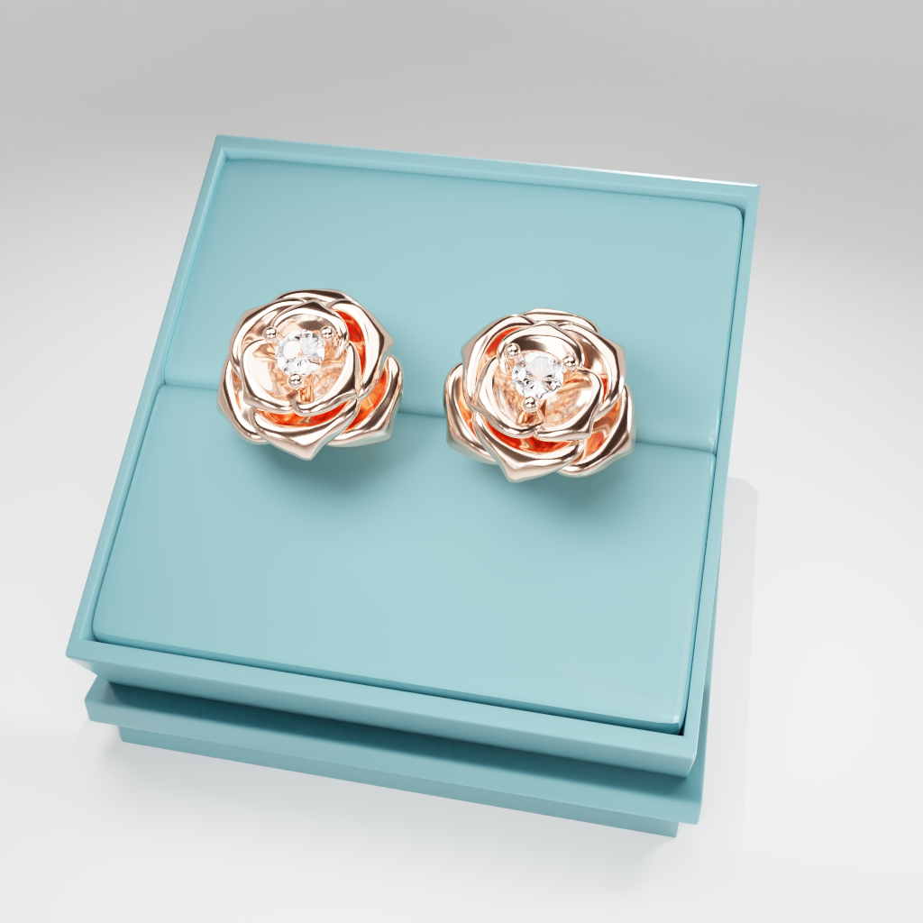Kolczyki Rose to hołd dla elegancji zaklętej w geometrycznej precyzji. Delikatna forma rozwiniętej róży otacza moissanit o średnicy 2.5 mm, który dzięki swojej wyjątkowej brylancji przyciąga światło i spojrzenia.