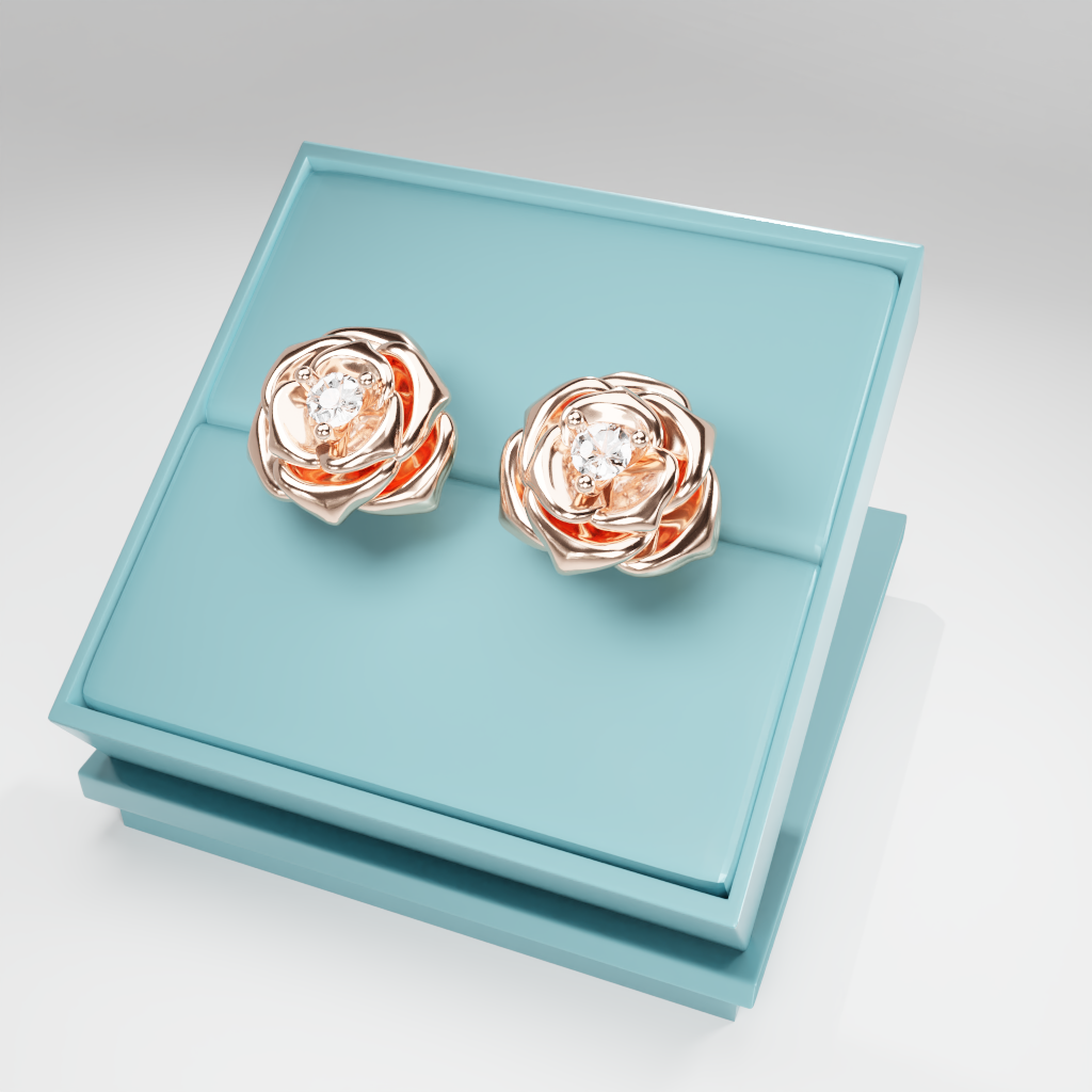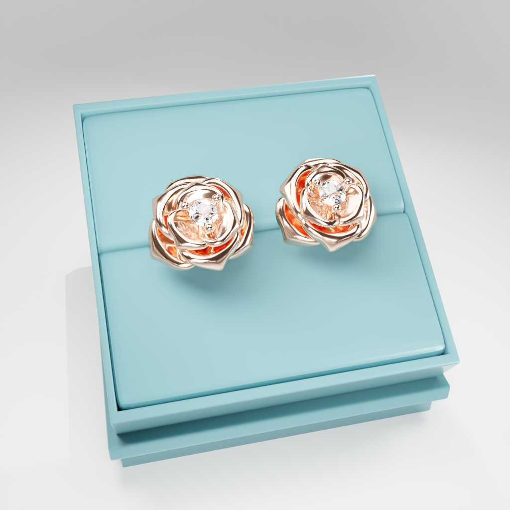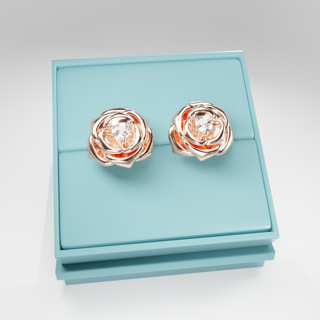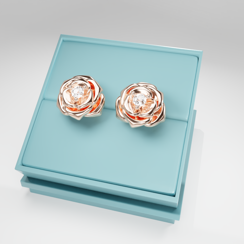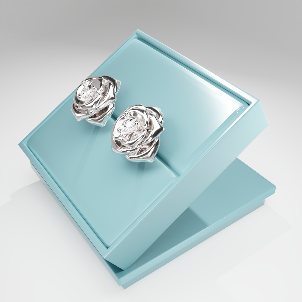 Kolczyki Rose to hołd dla elegancji zaklętej w geometrycznej precyzji. Delikatna forma rozwiniętej róży otacza moissanit o średnicy 2.5 mm, który dzięki swojej wyjątkowej brylancji przyciąga światło i spojrzenia.