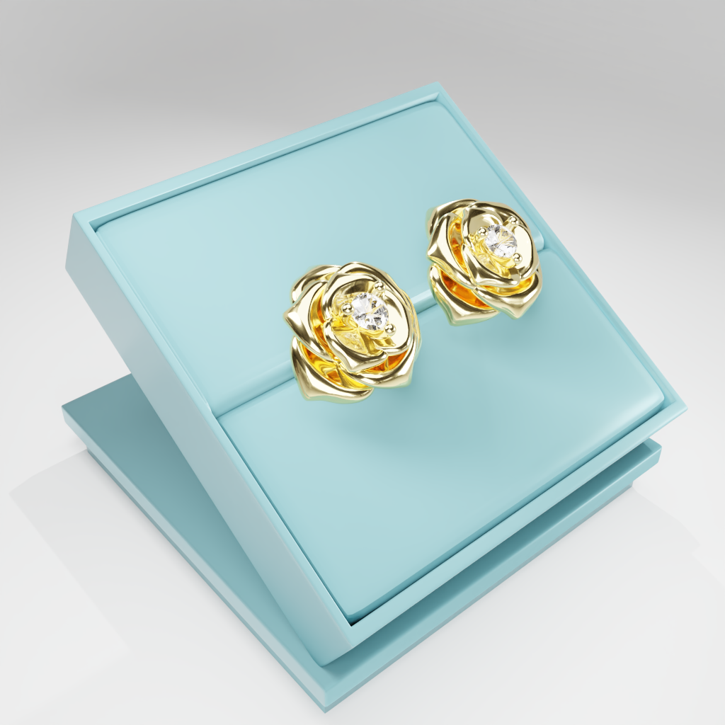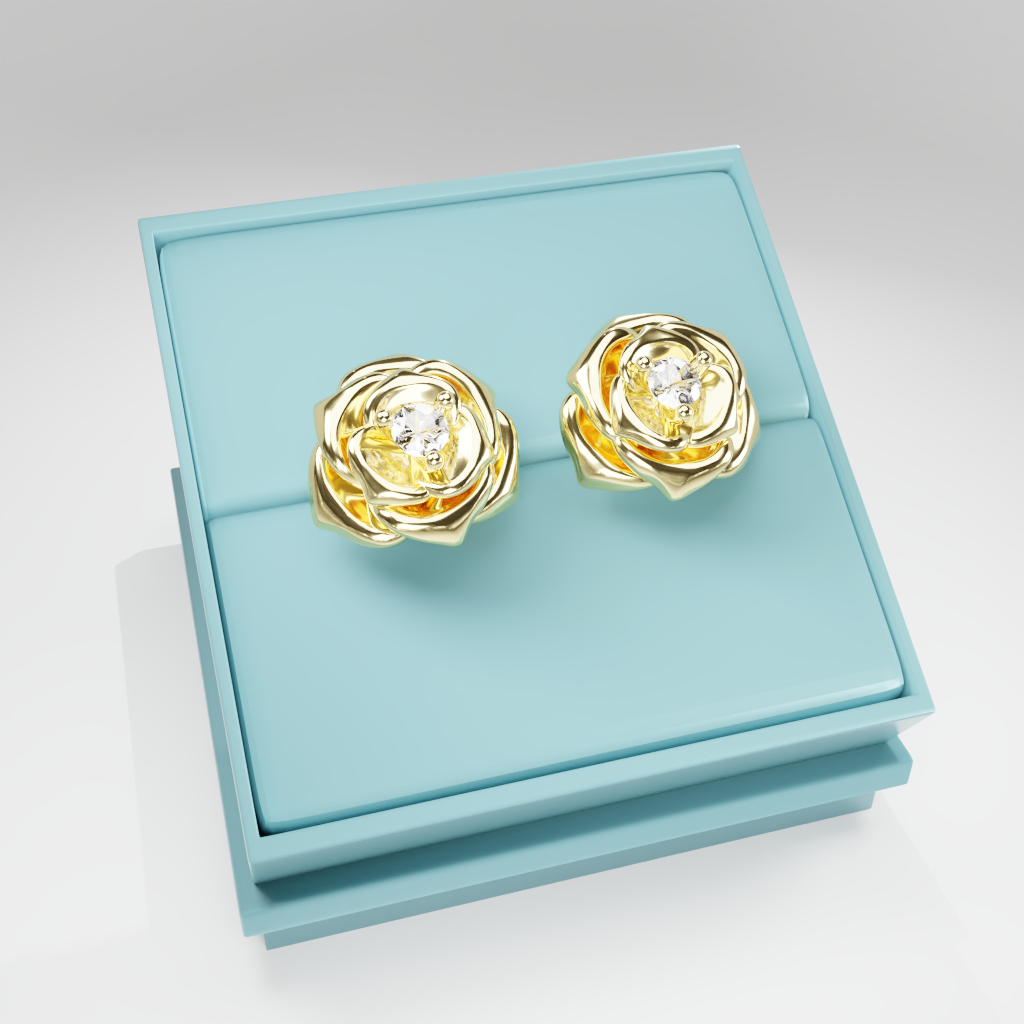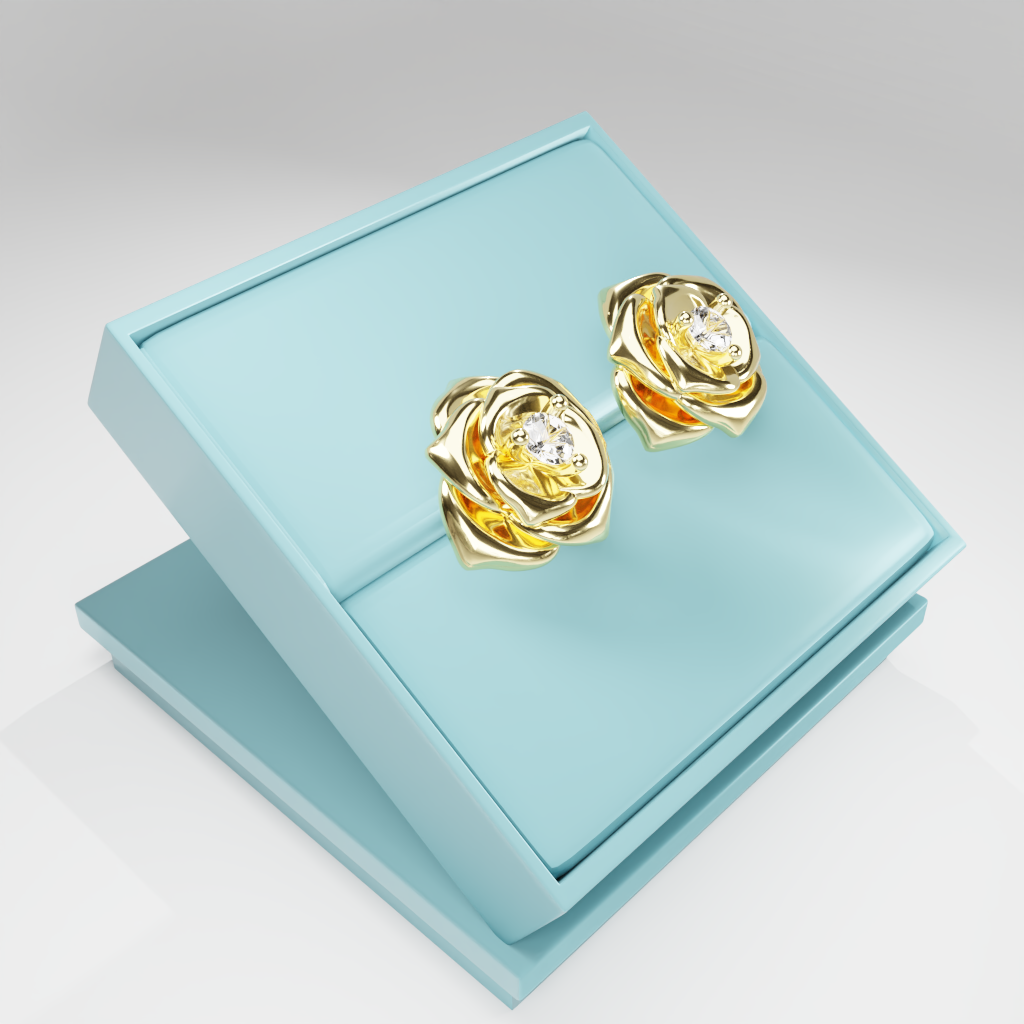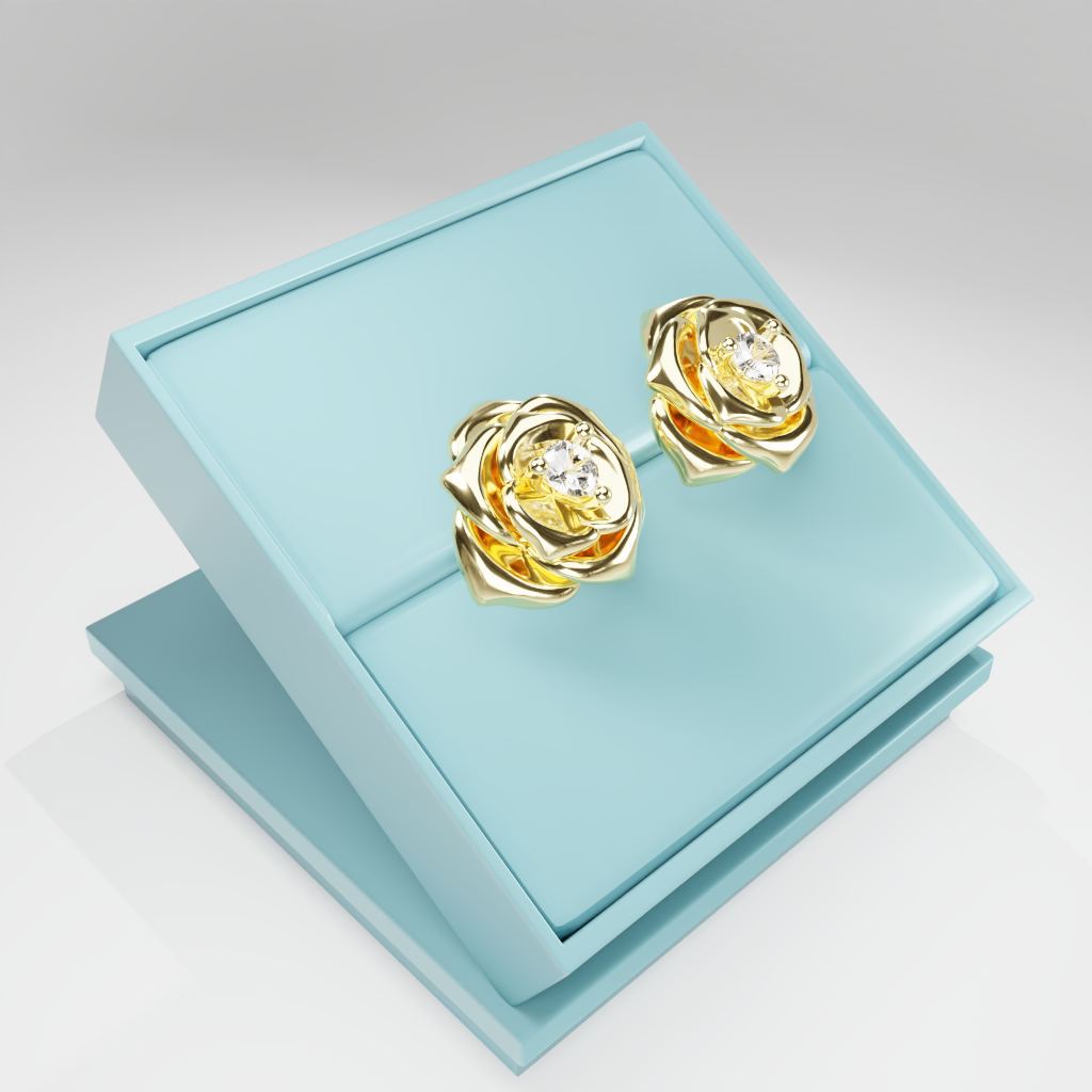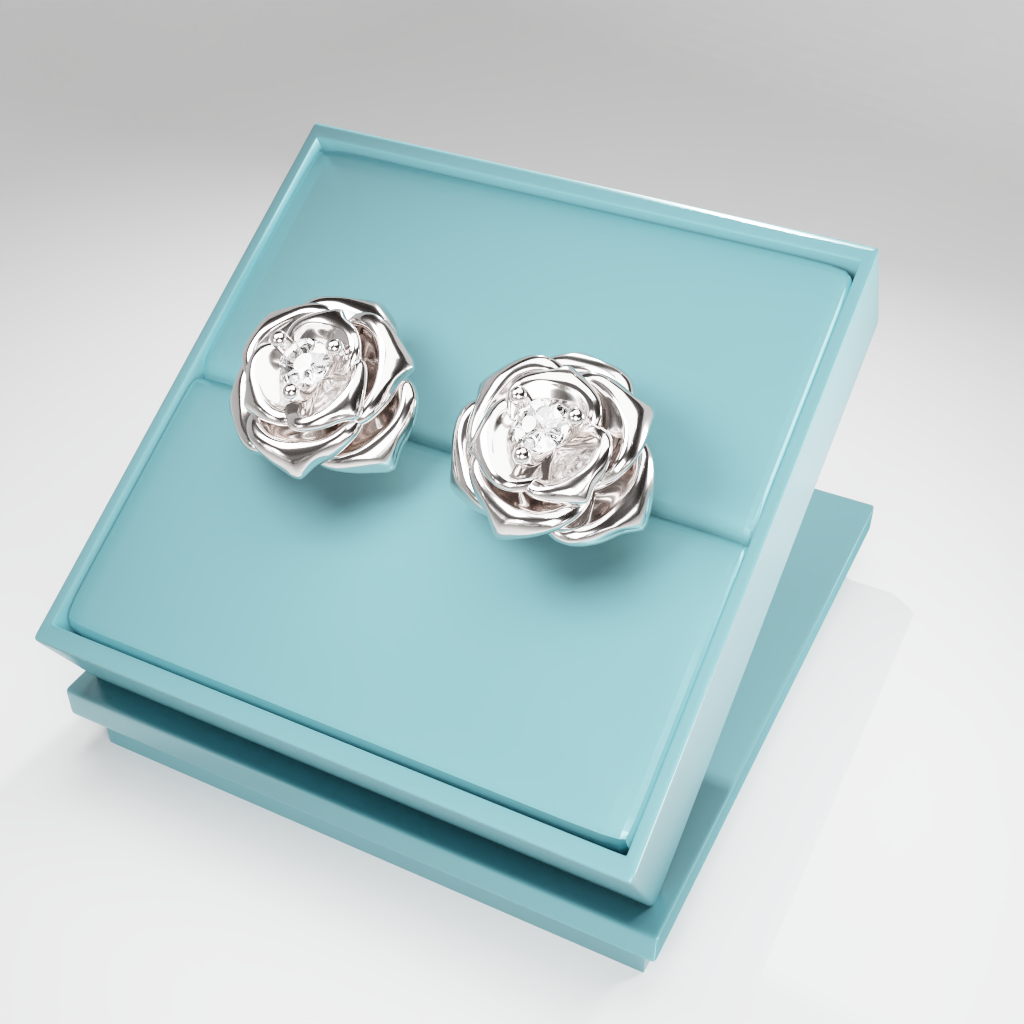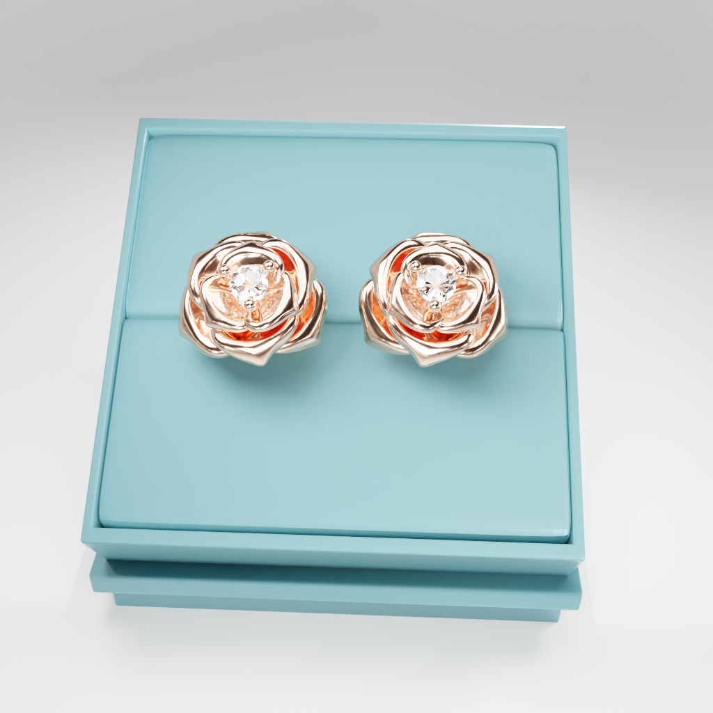 Kolczyki Rose to hołd dla elegancji zaklętej w geometrycznej precyzji. Delikatna forma rozwiniętej róży otacza moissanit o średnicy 2.5 mm, który dzięki swojej wyjątkowej brylancji przyciąga światło i spojrzenia.