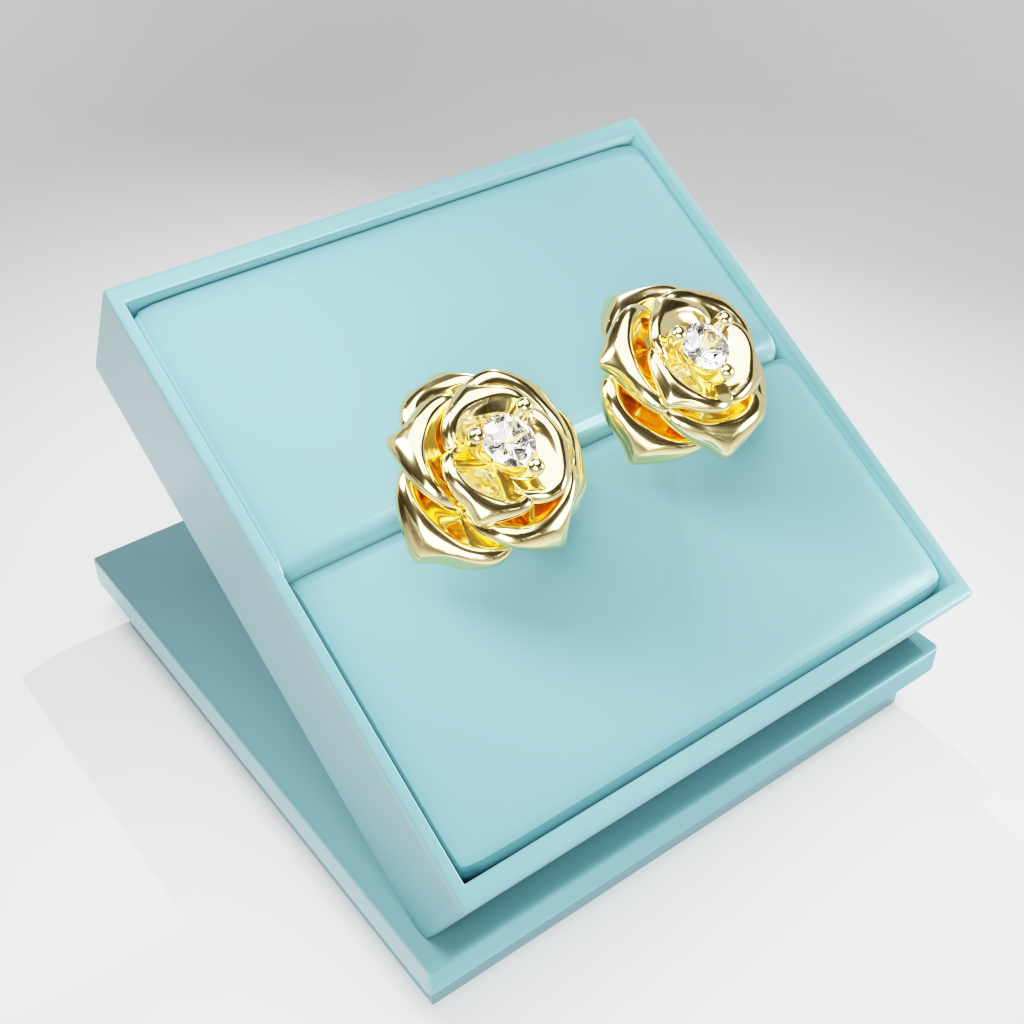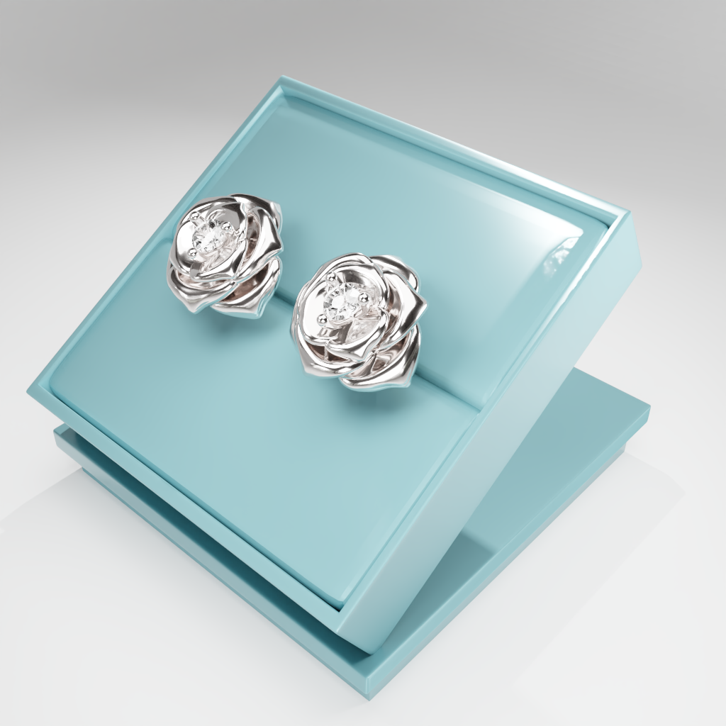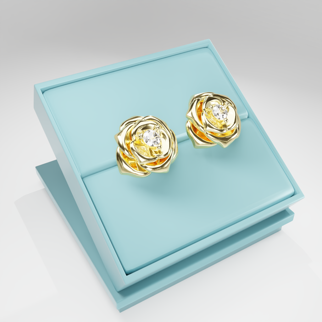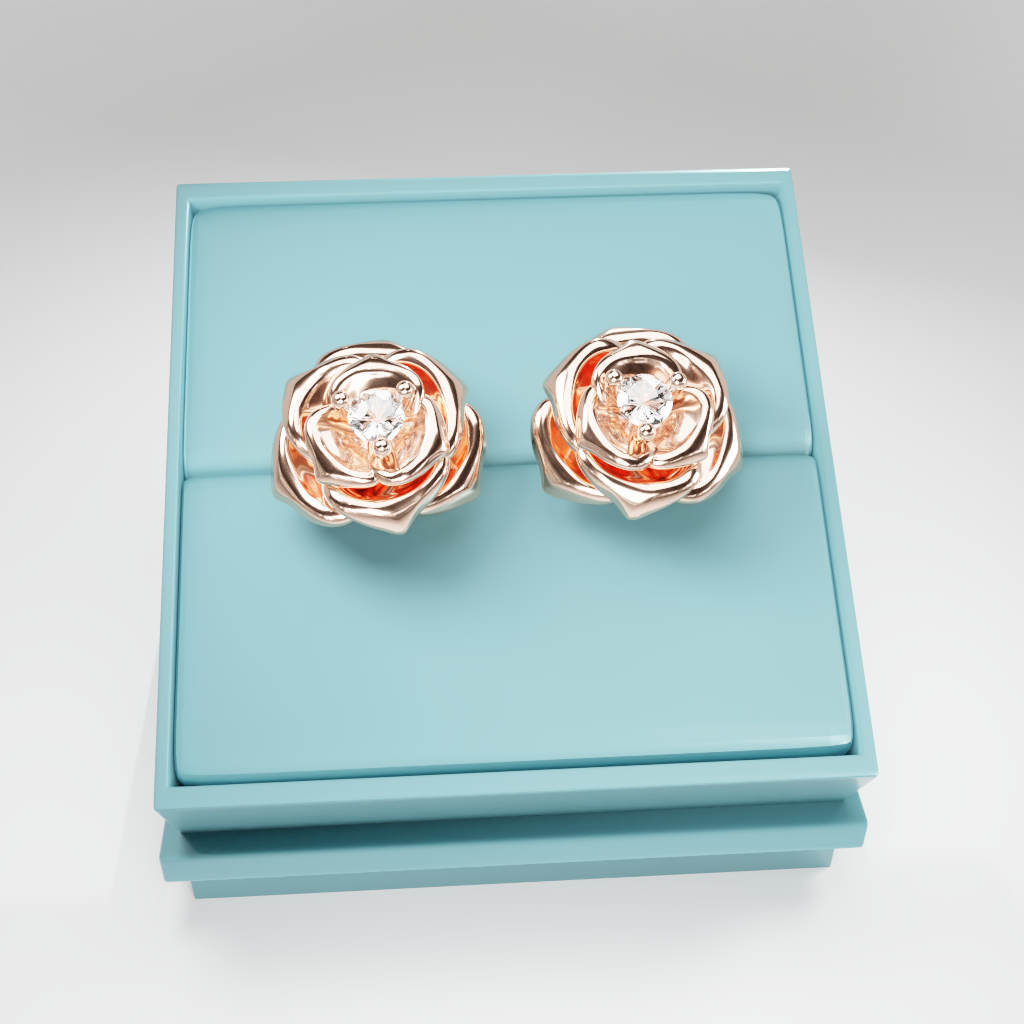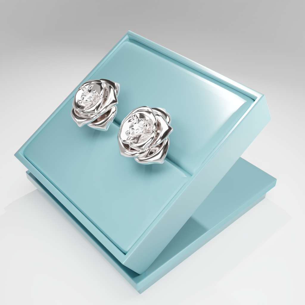 Kolczyki Rose to hołd dla elegancji zaklętej w geometrycznej precyzji. Delikatna forma rozwiniętej róży otacza moissanit o średnicy 2.5 mm, który dzięki swojej wyjątkowej brylancji przyciąga światło i spojrzenia.