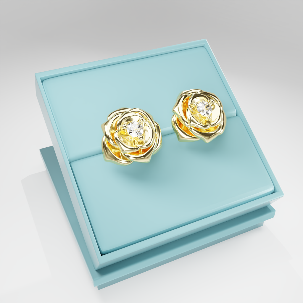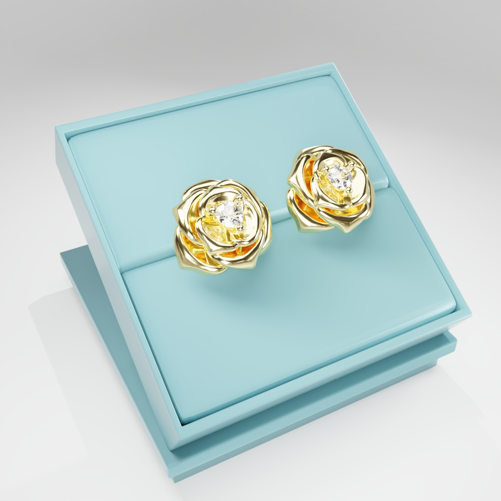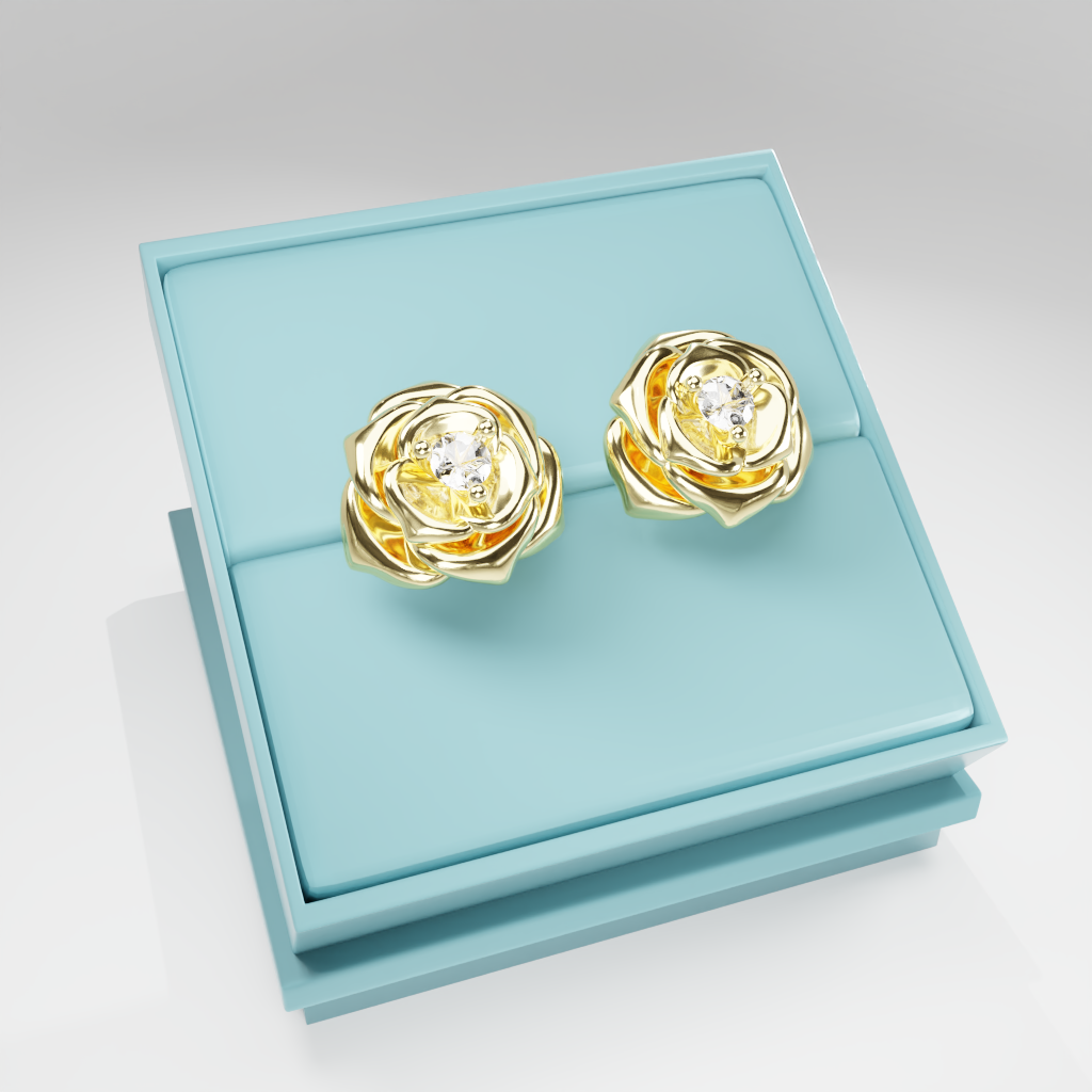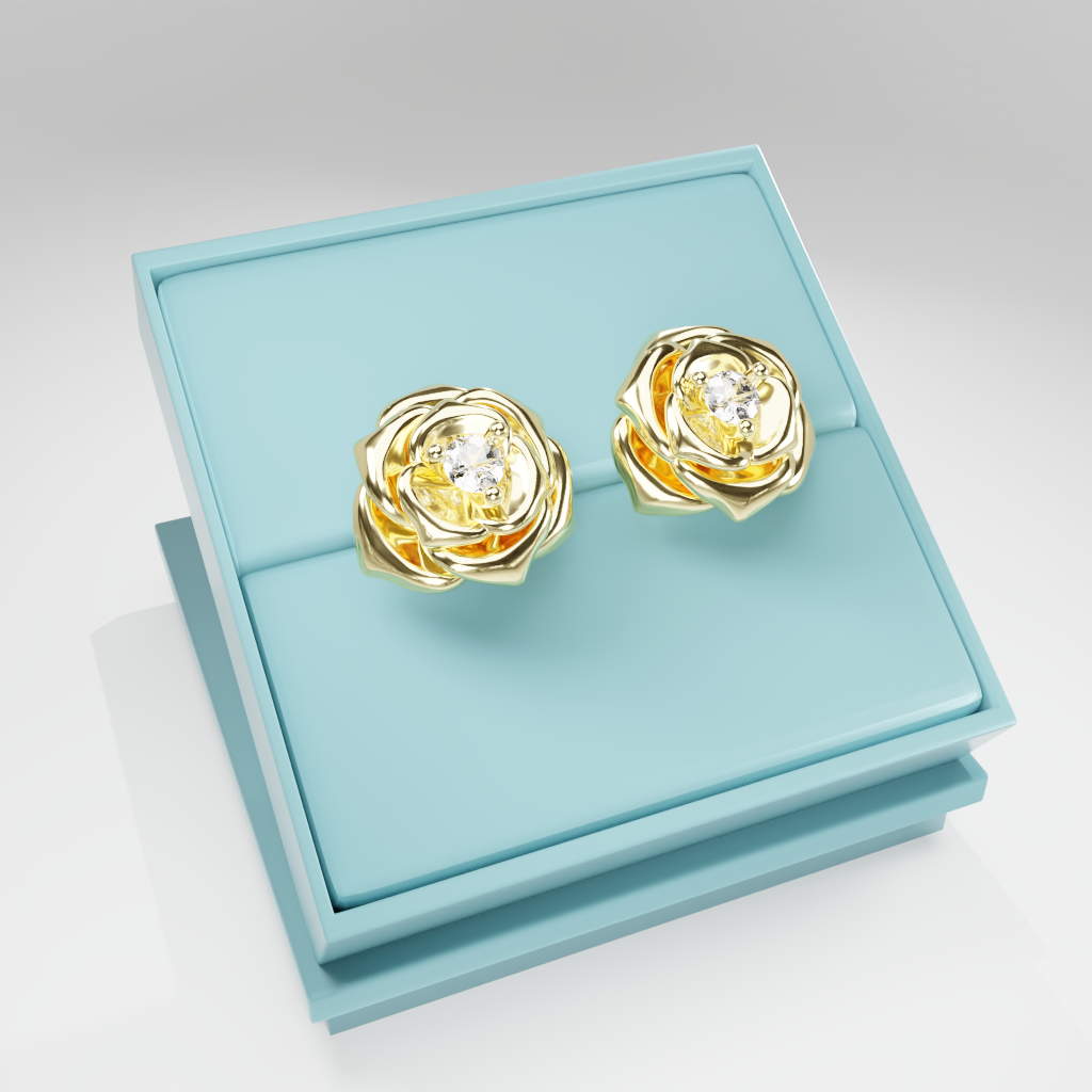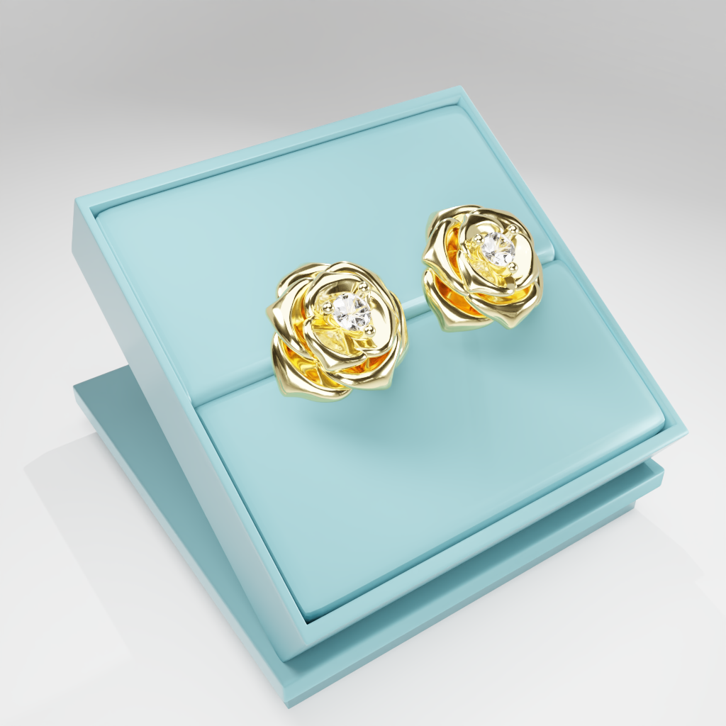 Kolczyki Rose to hołd dla elegancji zaklętej w geometrycznej precyzji. Delikatna forma rozwiniętej róży otacza moissanit o średnicy 2.5 mm, który dzięki swojej wyjątkowej brylancji przyciąga światło i spojrzenia.