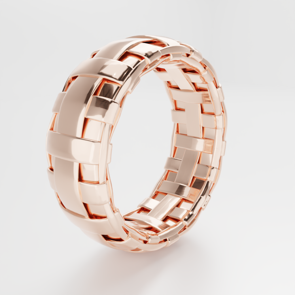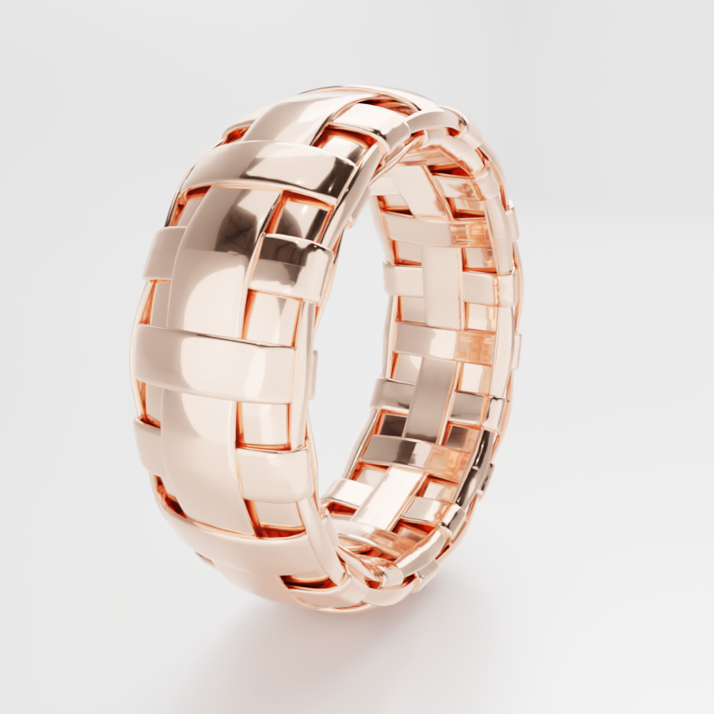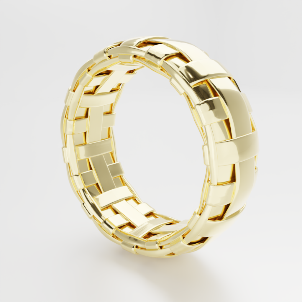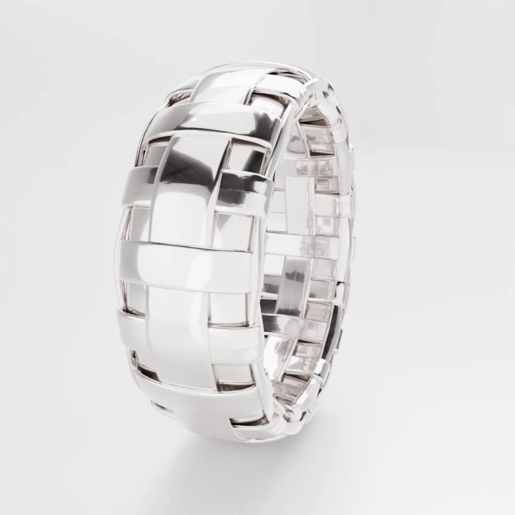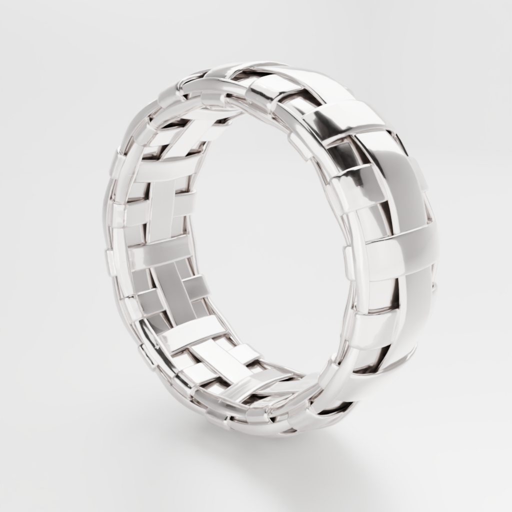 Wooven Ring nie potrzebuje symboli. Wystarczy spojrzeć na jego powierzchnię, żeby wiedzieć, że został zaprojektowany z myślą o osobach, które lubią czuć materiał pod skórą – nawet jeśli to metal.