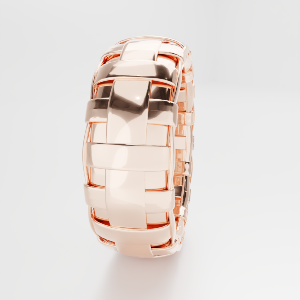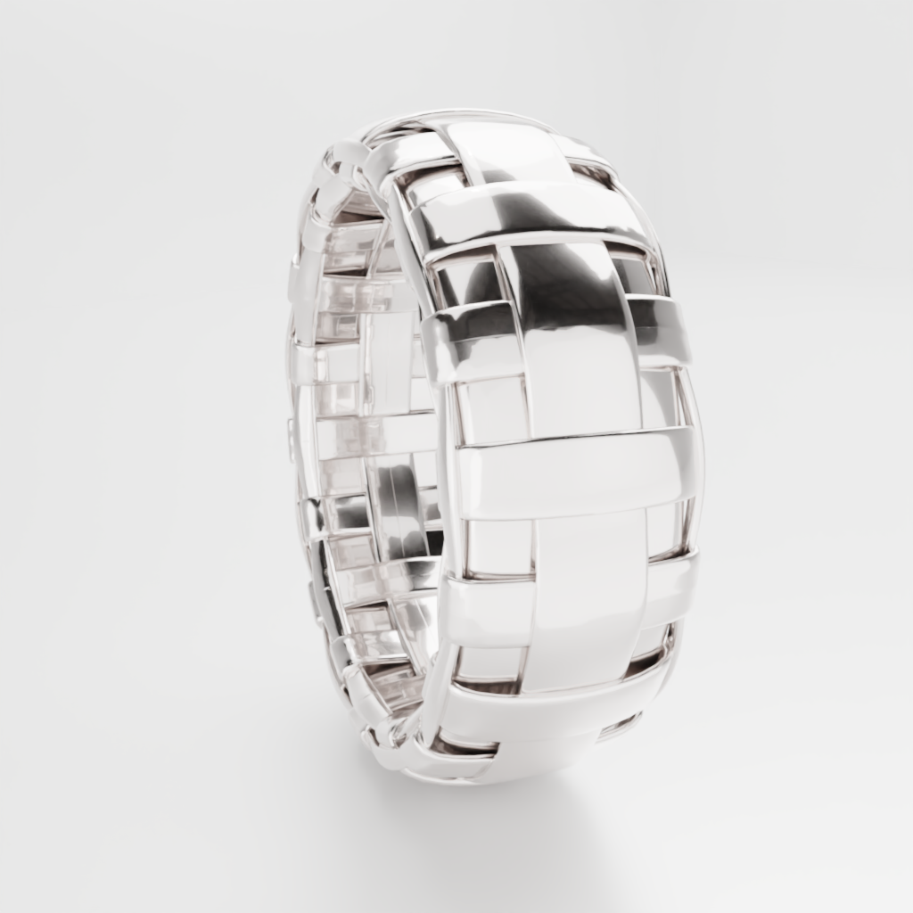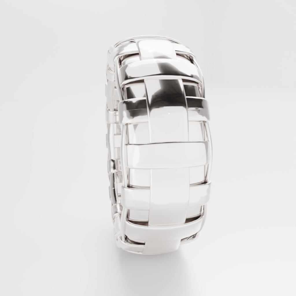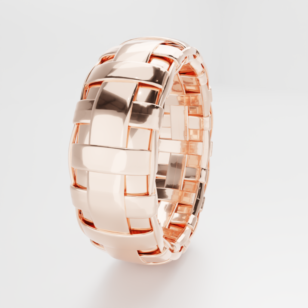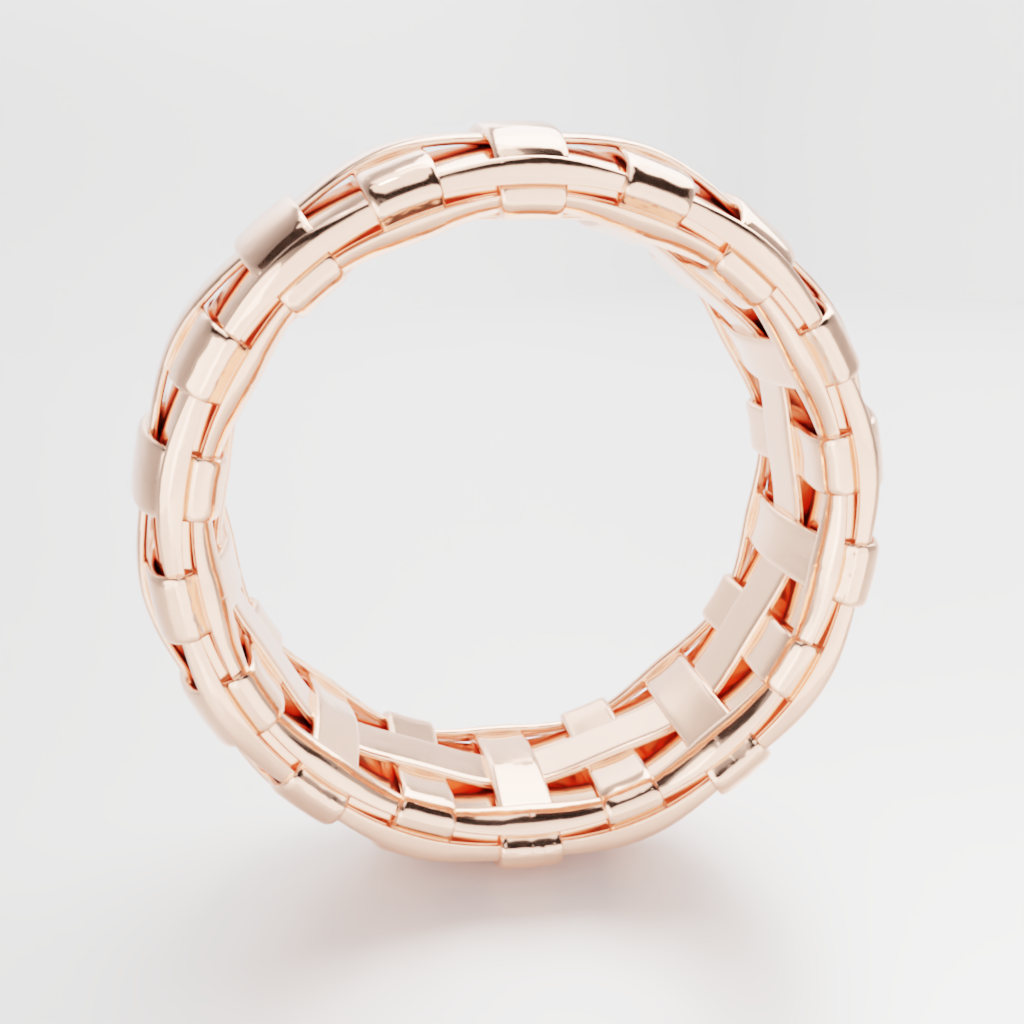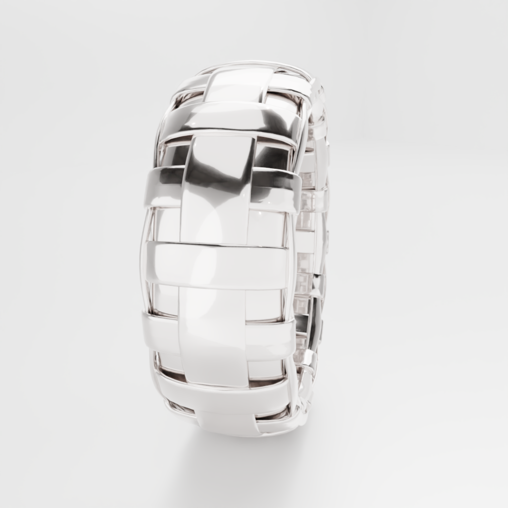 Wooven Ring nie potrzebuje symboli. Wystarczy spojrzeć na jego powierzchnię, żeby wiedzieć, że został zaprojektowany z myślą o osobach, które lubią czuć materiał pod skórą – nawet jeśli to metal.