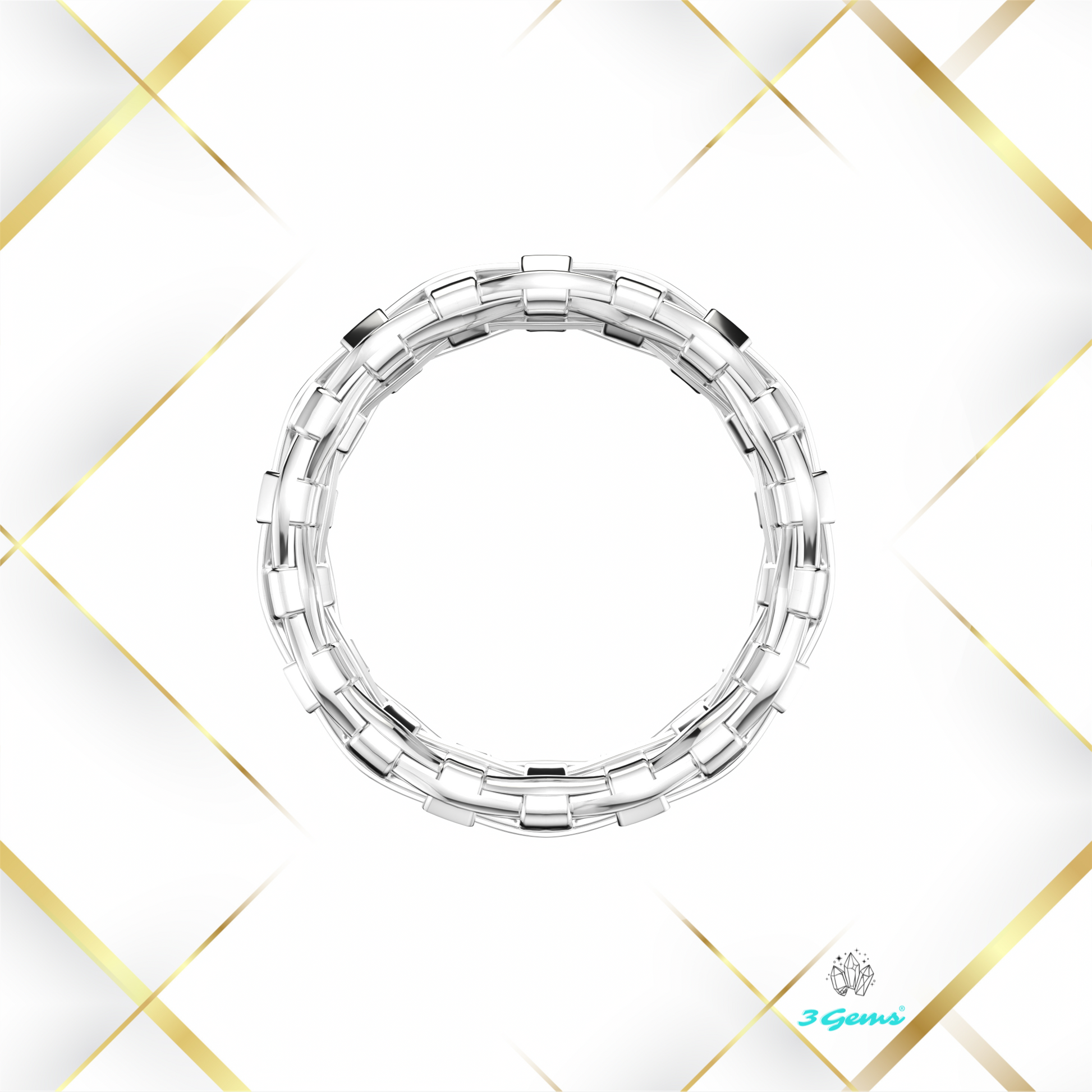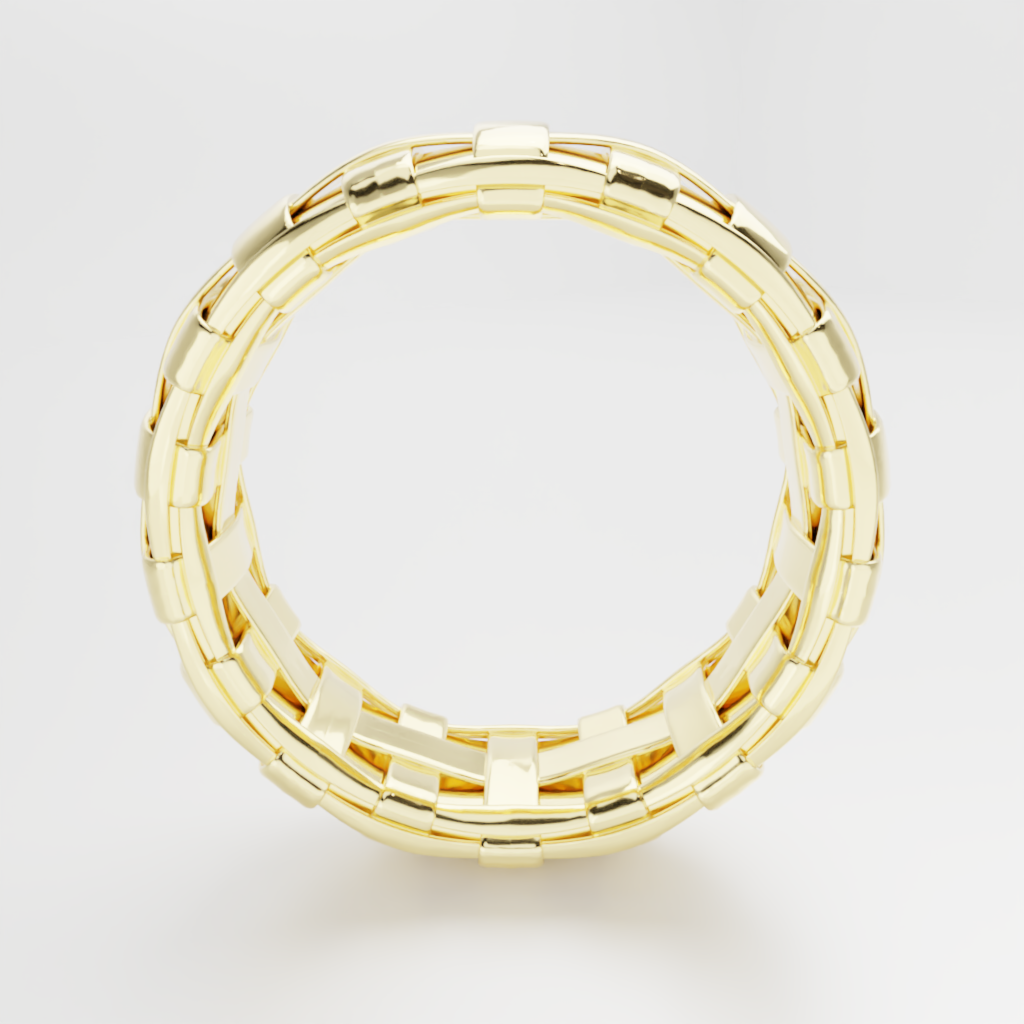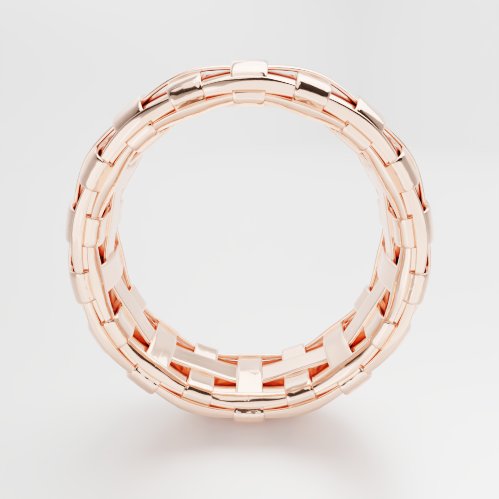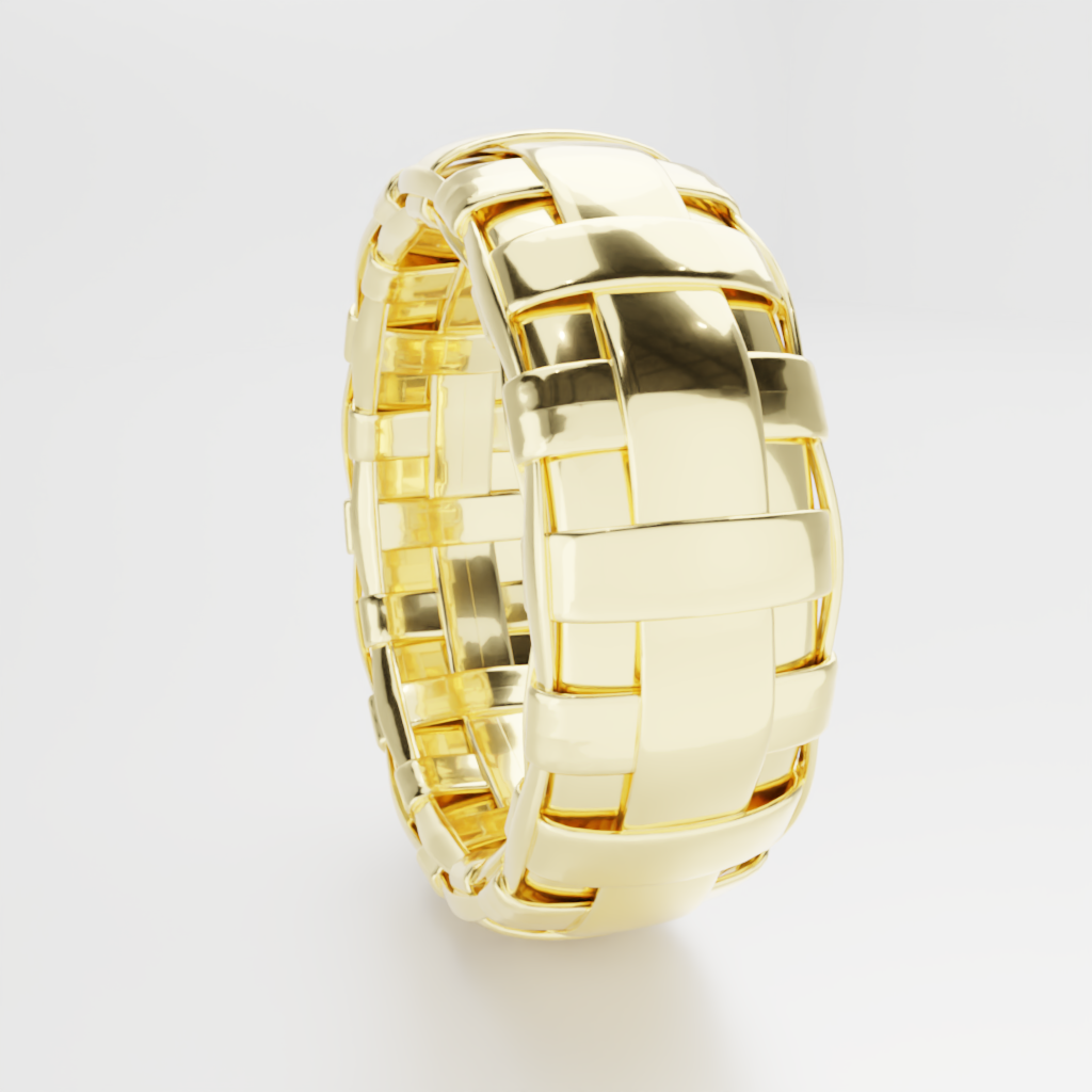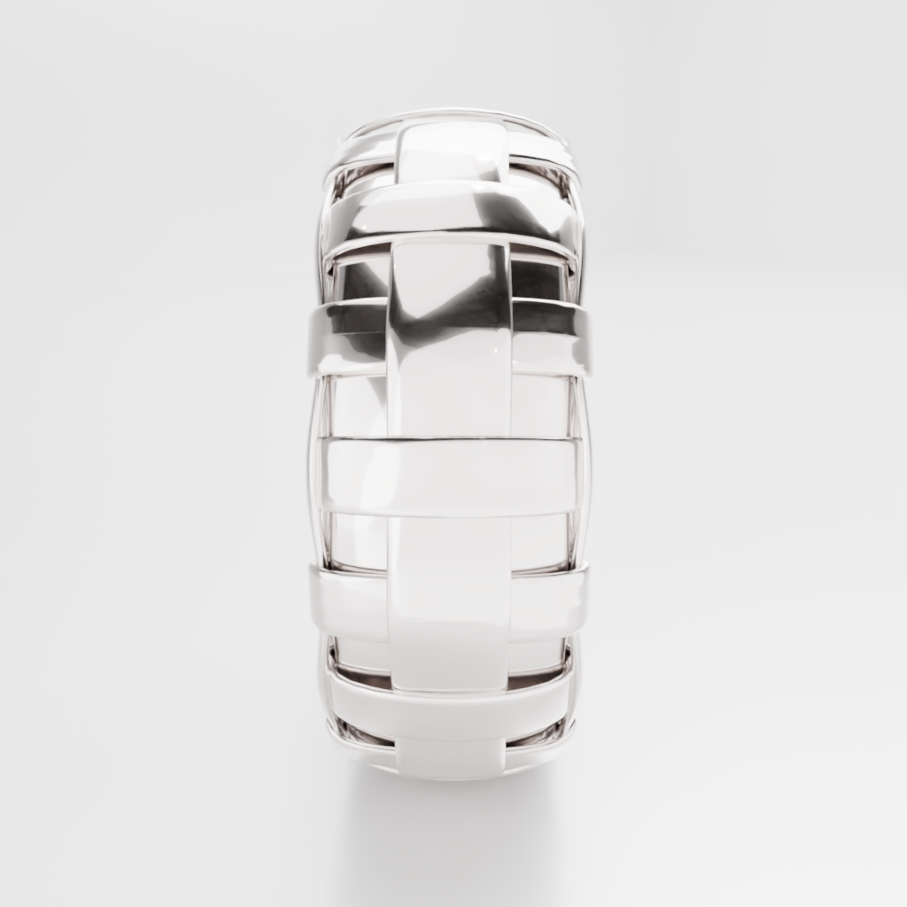 Wooven Ring nie potrzebuje symboli. Wystarczy spojrzeć na jego powierzchnię, żeby wiedzieć, że został zaprojektowany z myślą o osobach, które lubią czuć materiał pod skórą – nawet jeśli to metal.
